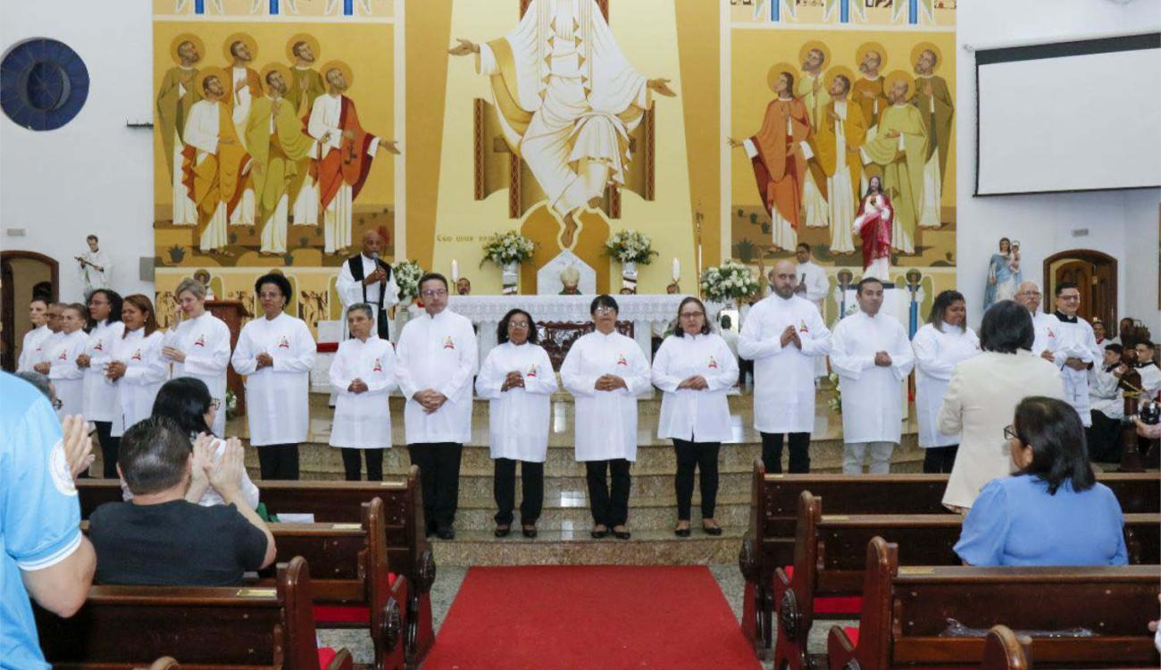 Depois da homilia, aconteceu o rito de investidura de 17 novos Ministros Extraordinários da Sagrada Comunhão. O Ministro Extraordinário da Sagrada Comunhão é um leigo com reconhecida idoneidade cristã, fé esclarecida, adequada preparação doutrinal, comunhão eclesial e vida cristã íntegra.