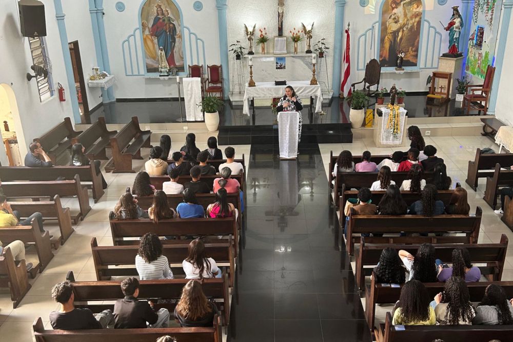 A formação foi conduzida por Núbia Nascimento, agente da Pastoral da Comunicação da Paróquia Santo Eugênio de Mazenoud, que trouxe orientações e pontos de discernimento sobre os excessos e perigos das redes sociais, especialmente na juventude.