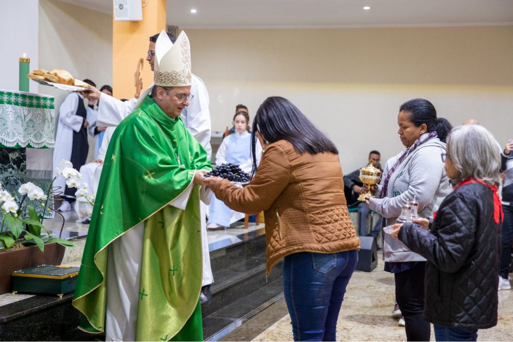Dirigindo-se aos ministros extraordinários na saudação inicial, Dom Valdir pontuou que “Glorificar a Deus por meio deste ministério significa, sobretudo, ser servo”.
