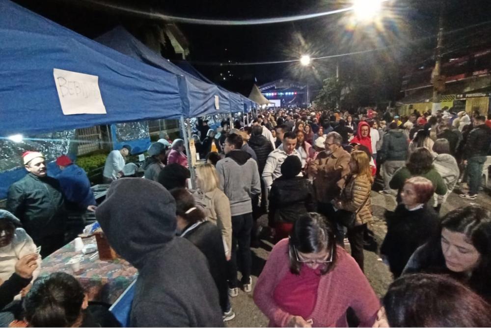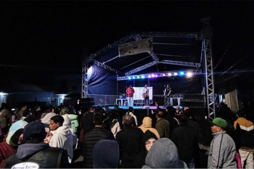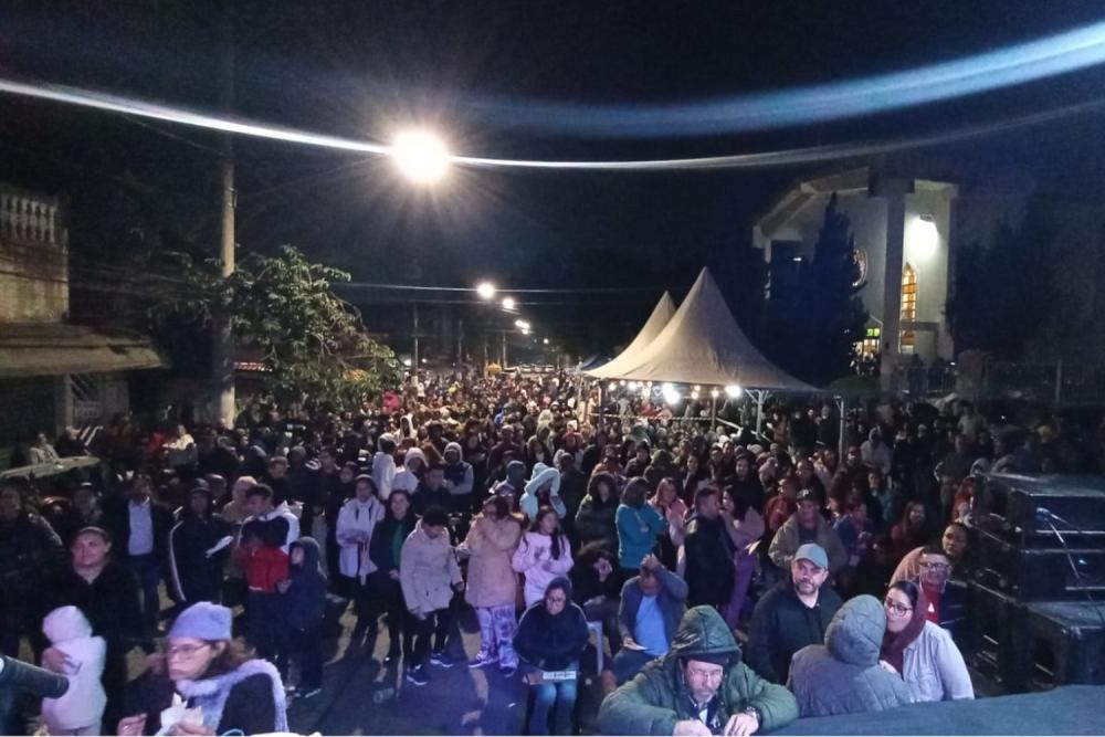 A rua em frente à paróquia se transformou em um vibrante palco ao ar livre, onde comerciantes locais e patrocinadores da região se uniram para garantir o sucesso da festa. O clima festivo tomou conta do lugar, com barracas de comidas e bebidas típicas de festa junina, e a energia contagiante do DJ Lucas, além da apresentação da banda de ‘pé de serra’ Forró Dizcreto, que fez a plateia dançar e se aquecer, apesar do frio.