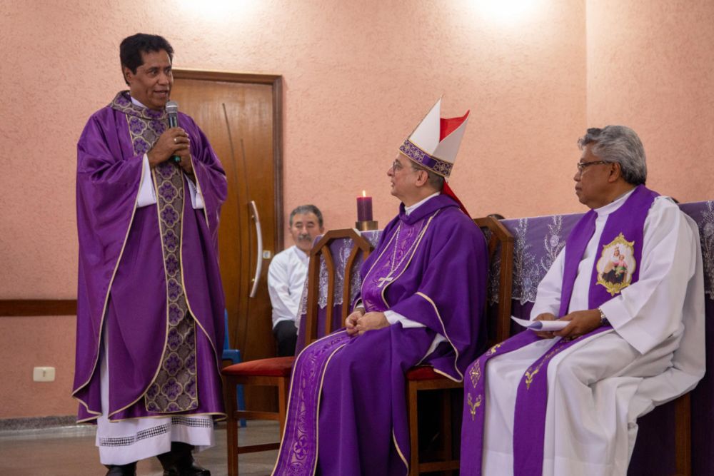 No último domingo, 9 de março, a comunidade da Paróquia Divino Espírito Santo, no Parque Regina, Forania São Luís, celebrou a posse de seu novo pároco, padre Polikarpus Rangga, SVD (Missionário do Verbo Divino). A cerimônia foi presidida pelo bispo diocesano, Dom Valdir José de Castro, e contou com a concelebração dos padres Sandro Ely de Oliveira, cerimoniário, e do vigário paroquial, padre Ferdinandus Doren, SVD, que realizou a leitura da provisão no início da celebração.