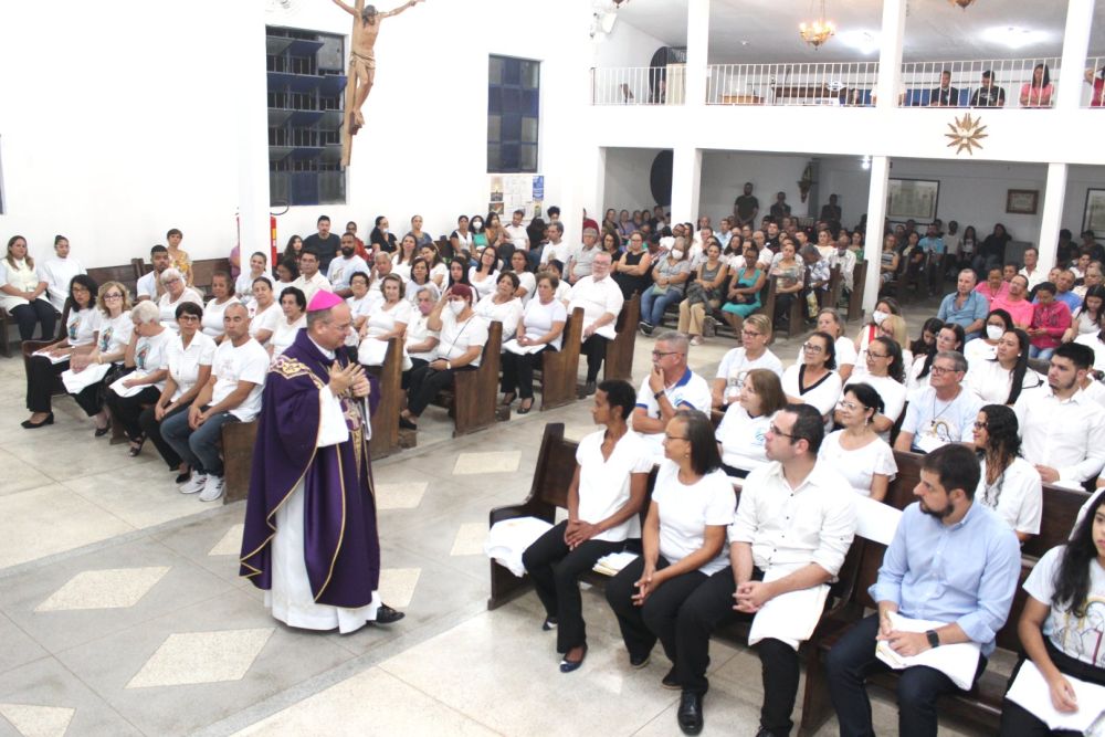 Com o desejo de continuar construindo uma Igreja viva, participativa e centrada na Eucaristia e na Palavra de Deus, na quinta-feira (23/03), a Paróquia Nossa Senhora do Rosário, forania Embu das Artes, recebeu o bispo diocesano Dom Valdir José de Castro, para a investidura dos novos candidatos ao serviço de Ministros Extraordinários da Eucaristia e renovação dos veteranos.
