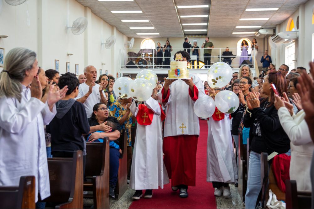 Após a bênção, o bolo foi distribuído para os presentes, seguido pelos parabéns entoados em uma só voz por todos.