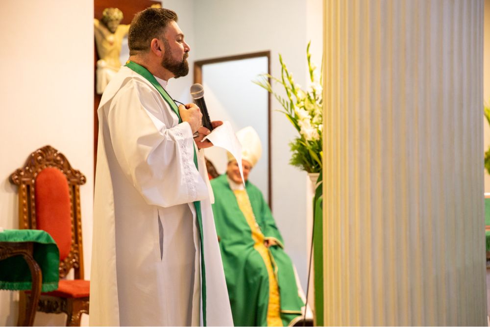 Antes de iniciar a celebração, Dom Valdir falou a alegria de estar na comunidade e parabenizou os ministros extraordinários da Comunhão Eucarística, que dão seu sim e realizam um importante serviço dentro da dinâmica paroquial.