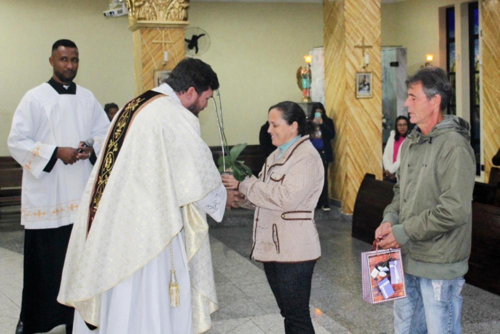 Ao final da missa, padre Edmilson recebeu homenagens de paroquianos e, visivelmente emocionado, agradeceu a Deus, à comunidade e, de modo especial, à sua mãe, presente na celebração, e aos seus pais pelo dom da vida.