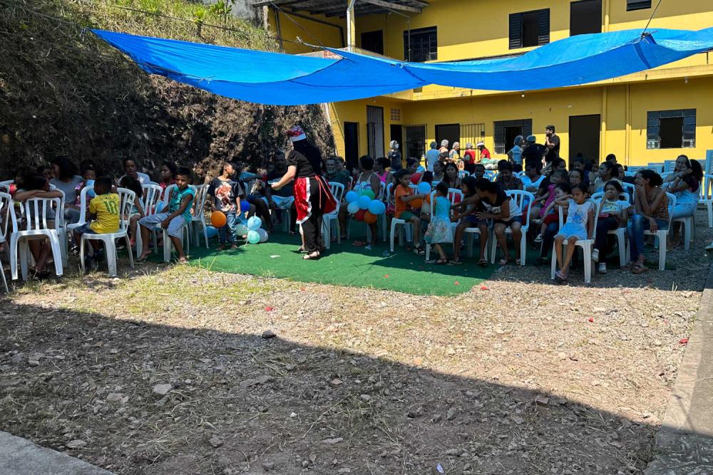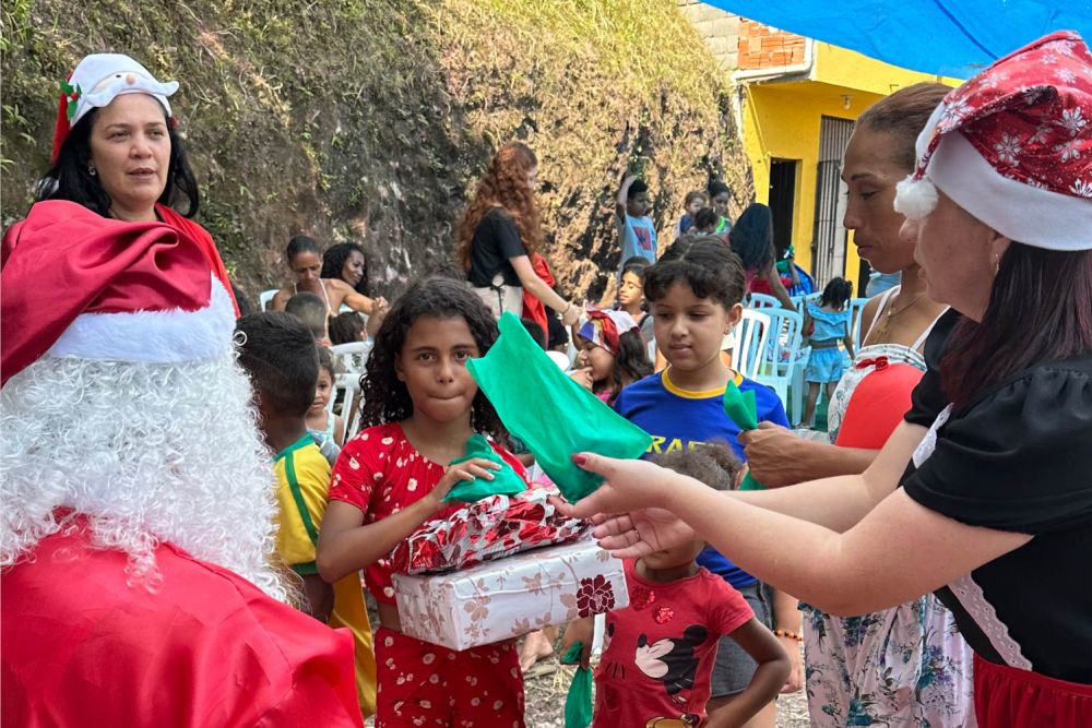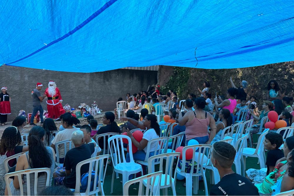 Durante a celebração, presentes foram distribuídos, sendo oferecidos pelas famílias mais favorecidas da comunidade. O 'papai noel' marcou presença, entregando os presentes e contagiando de alegria as crianças presentes no evento.