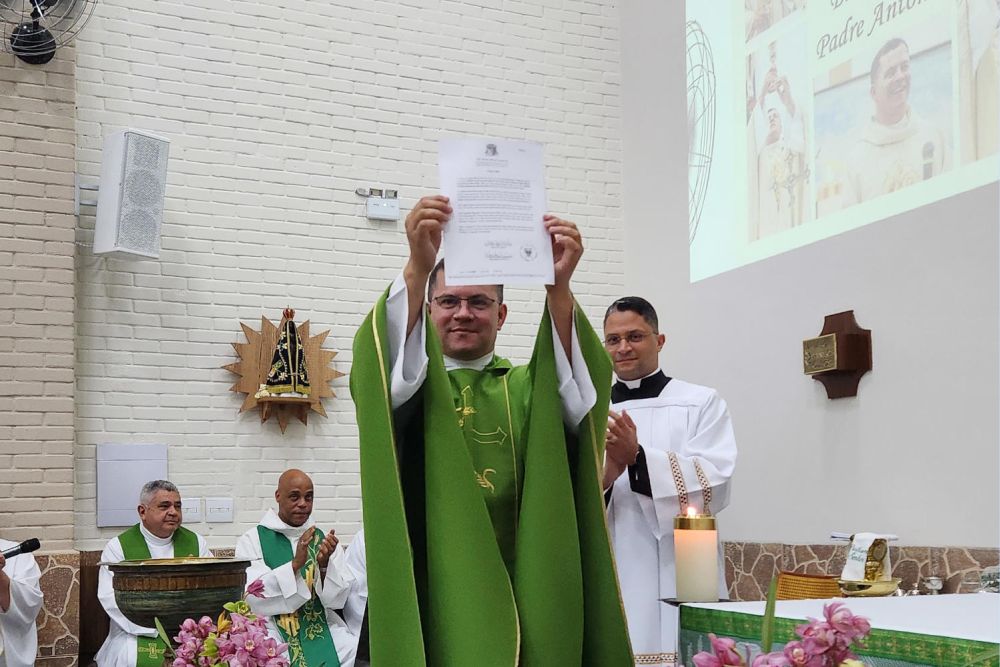 Ao declarar oficialmente empossado o novo pároco, Dom Valdir foi acompanhado por calorosos aplausos da assembleia, formada por paroquianos e por fiéis da Paróquia Cristo Rei, onde padre Antônio atuava desde sua ordenação, em maio de 2014.