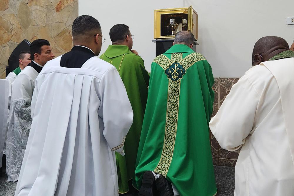 Comentando o Evangelho do dia, o bispo destacou o chamado exigente de Jesus para amar, inclusive os inimigos: “É fácil amar aqueles que nos querem bem. Mas o Senhor nos convoca a ir além, a oferecer amor, perdão e misericórdia também àqueles com quem temos dificuldade. Muitas vezes não compreendemos a grandeza da misericórdia de Deus, nem a profundidade do Seu amor. Mas é este amor sem limites que deve orientar a vida da comunidade e do pároco: viver a bondade, a mansidão e a misericórdia como caminho de santidade”.
