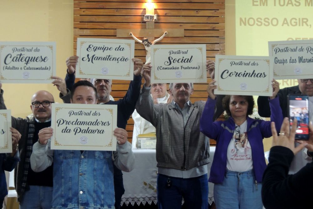 Junto com a procissão das oferendas, foram apresentadas no altar do Senhor todas as 23 pastorais e movimentos que compõem as atividades da Paróquia São João Paulo II, exercendo seu papel missionário desde a iniciação cristã, passando pela atenção aos jovens e pelo cuidado com os enfermos e famílias que mais precisam de assistência material e espiritual.