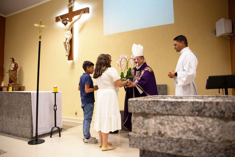 A comunidade preparou uma carta-agradecimento a dom Valdir pela visita, lida no pós-comunhão e presenteou o bispo com uma Capelinha de São José.