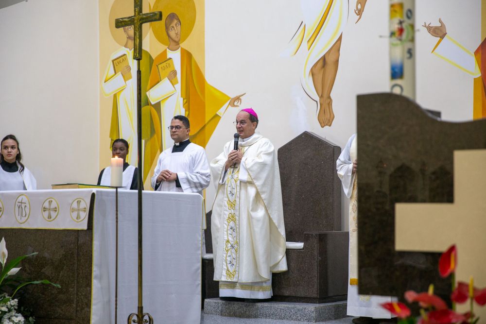 A celebração foi presidida por Dom Valdir José de Castro, bispo diocesano, que voltou à paróquia quase dois anos após sua última visita, no Dia dos Pais. Concelebraram com ele o pároco, padre Francisco Glênio de Almeida, e o cerimoniário diocesano, padre Danilo Rodrigues.