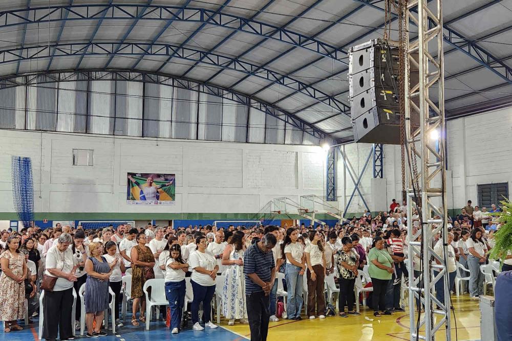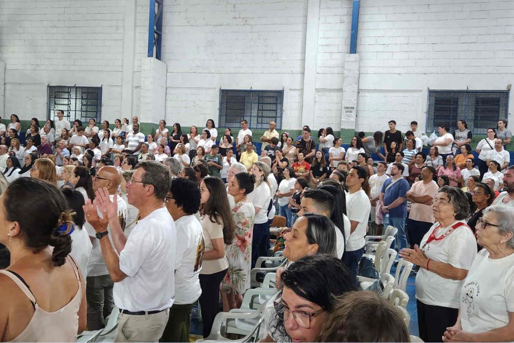 Desde as primeiras horas da manhã, o ginásio tornou-se espaço de encontro com Deus. Entre louvor, pregação, confissão e adoração, centenas de pessoas experimentaram a alegria de uma fé vivida em comunidade. O clima era de oração e festa, com corações abertos à graça.