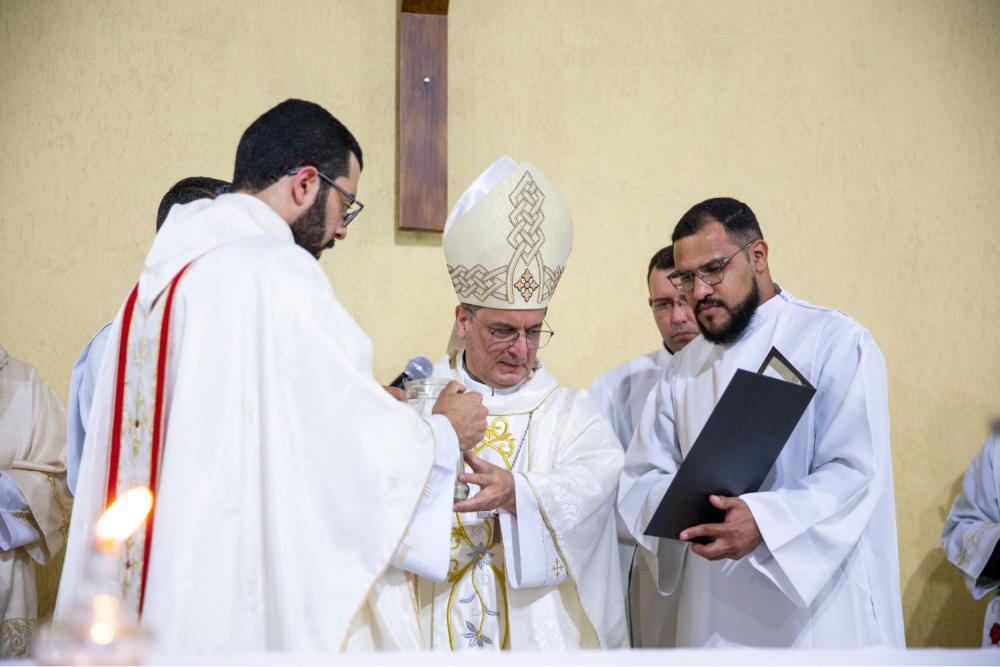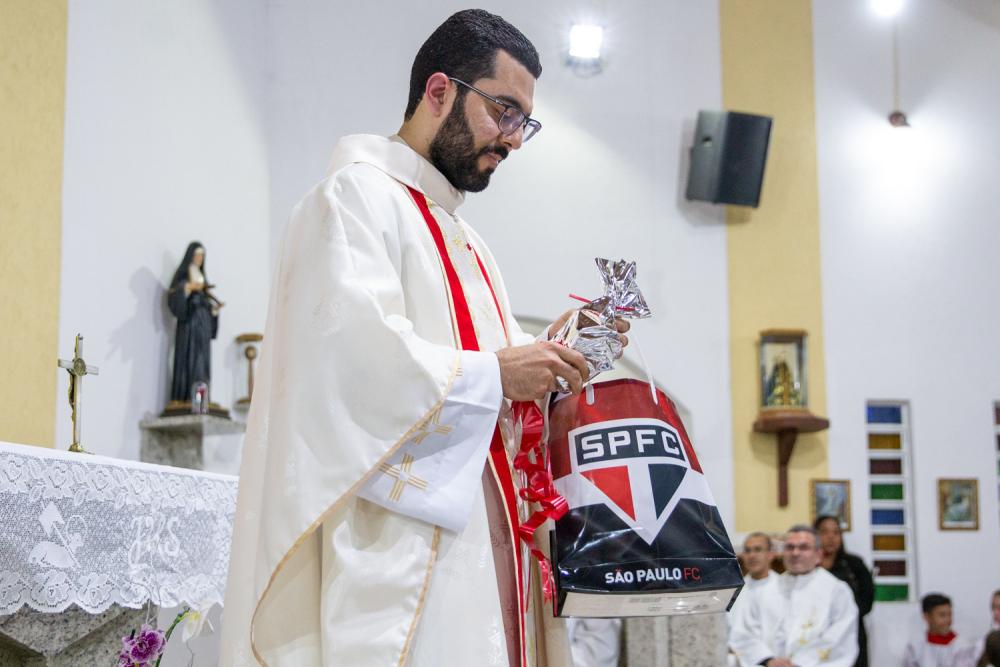 Após a homilia, o bispo apresentou alguns instrumentos que o novo pároco fará uso para melhor exercer seu ministério na comunidade paroquial, a chave do Sacrário, a fonte Batismal e estola roxa, sinal do sacramento da Reconciliação.