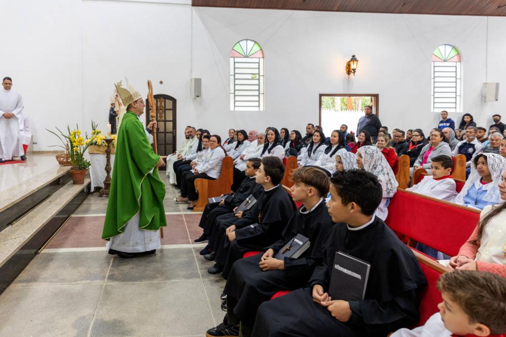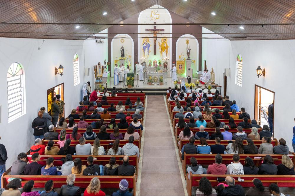 A comunidade em festa presenteou o bispo com uma imagem do padroeiro e rezou unida uma Ave-Maria por sua vida e missão no momento pós-comunhão. Dom Valdir participou ainda do café da manhã e conversou longamente com os membros da comunidade.
