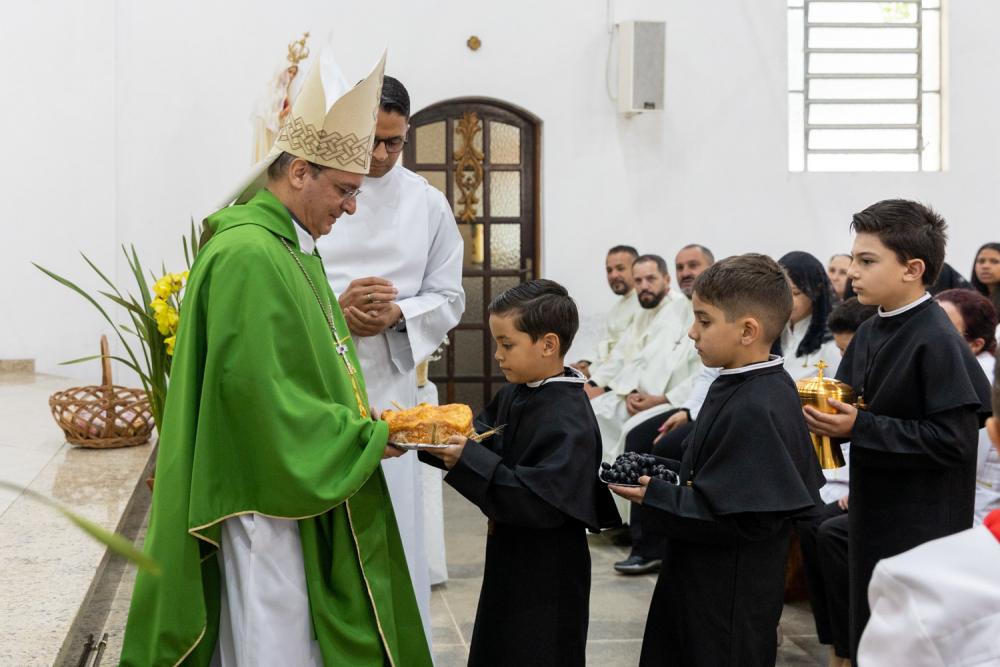 Um dos destaques da celebração foram as crianças da catequese que, vestidas de Santo Inácio de Loyola, participaram da procissão à frente do andor e do ofertório na Santa Missa.