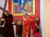 Padre Denis reproduziu, durante o período da pandemia da COVID-19, de forma adaptada, o painel da obra “Crucificação”, do pintor Giotto di Bondone, de 1306. A obra original se encontra na Cappella degli Scrovegni, em Padova, na Itália.