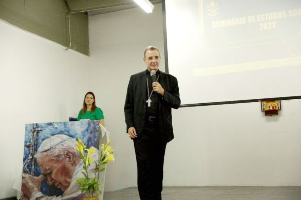 Falando sobre a exortação apostólica do Papa Francisco “Amoris Laetitia” sobre a alegria do amor na família, a Profa. Cecília destacou os principais pontos do documento papal, levando os participantes a uma reflexão do amor – misericórdia que é necessário ter, dado os desafios da situação do mundo: - redução do afeto à sexualidade; - solidão e – a visão do vínculo como um mal. O processo de obsolescência do mundo – do descartável, que vivemos com a falsa necessidade constante de troca de celular, de carro etc. e a rapidez dos sistemas midiáticos levam à impaciência, que tem gerado relações humanas superficiais. É preciso combater isso, trocando a “cultura do provisório” pela “cultura da doação” – investir, praticar e difundir: - generosidade; - paciência; - não ao consumismo; - sim a ser bom; - apontar que o mal tem consequências - evitar ações ruins. Como ensinava São Tomás de Aquino a liberdade é dizer sim para o bem e não para o mal. O testemunho de cada cristão muda o mundo – somos as testemunhas de Cristo e para cada um que se aproxima de nós representamos o próprio Cristo. Sua exposição foi finalizada com a indicação do caminho que o Papa propõe na exortação: - sermos companhia e sermos uma ajuda para que o outro possa reconhecer e escolher o bem. Os alunos clamam pela nossa companhia e precisamos levá-los a um caminho para o amadurecimento do afeto.