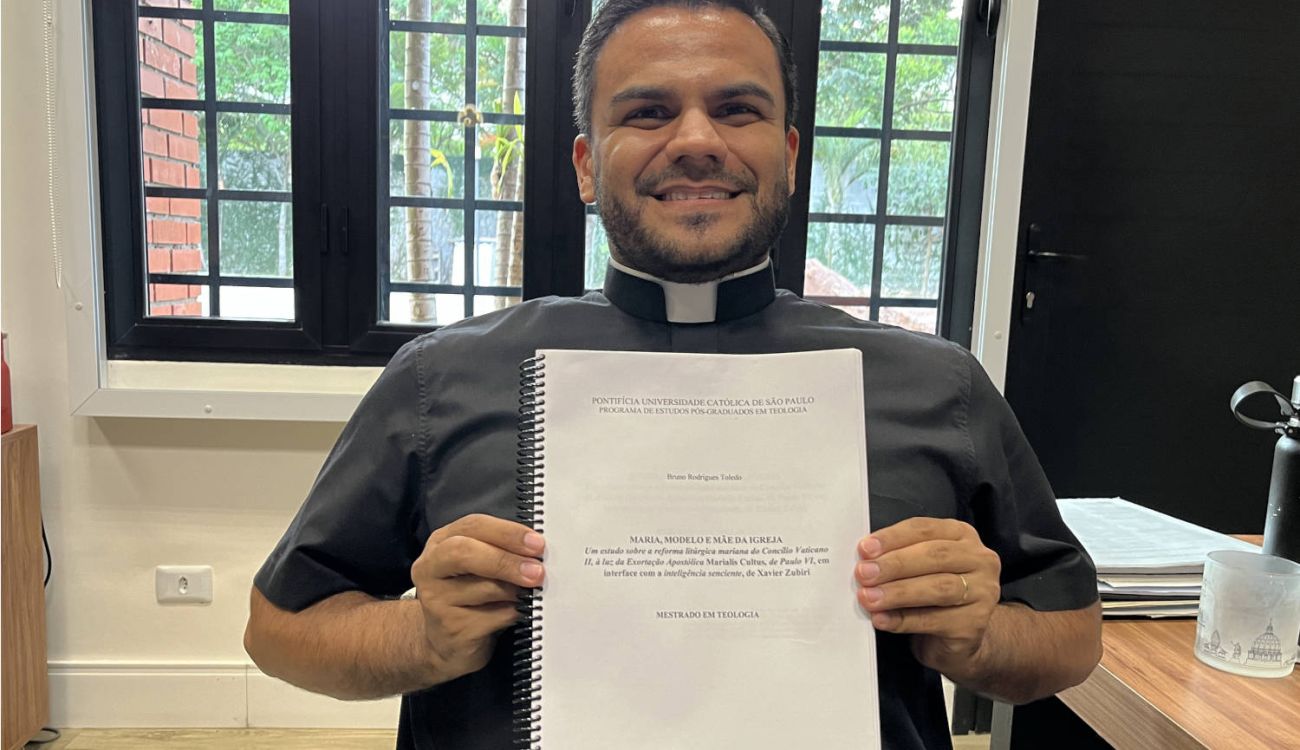No dia 12 de agosto de 2024, a tarde fria no campus da Pontifícia Universidade Católica de São Paulo (PUC-SP) foi marcada por uma conquista significativa para o padre Bruno Rodrigues Toledo, de 32 anos. O pároco da paróquia Sagrado Coração de Jesus, localizada no Jardim Jangadeiro, na forania São José, apresentou e defendeu sua dissertação de mestrado em Liturgia, com o título “Maria, Modelo e Mãe da Igreja - Um estudo sobre a reforma litúrgica mariana do Concílio Vaticano II, à luz da Exortação Apostólica Marialis Cultus, de Paulo VI, em interface com a inteligência senciente, de Xavier Zubiri”, sendo aprovado sem restrições.