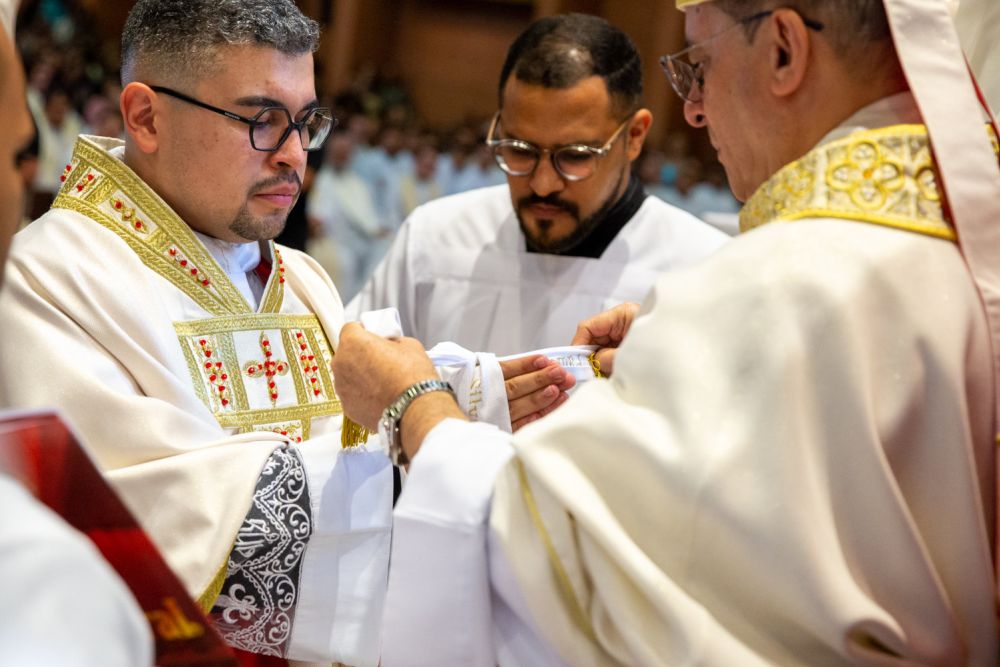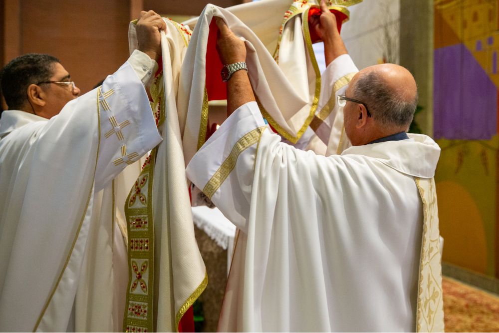 Como sinal de unidade, os presbíteros receberam os ordenados como membros do clero. Cada sacerdote presente beijou as mãos ungidas e, com um abraço e palavras de carinho cada um deles, os acolheu no presbitério. Nesse momento houve muita emoção.