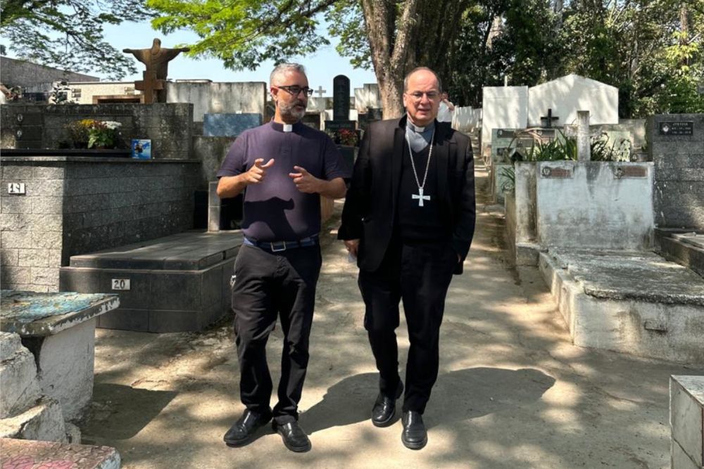 A manhã de sábado, 31 de agosto, começou cedo para Dom Valdir na paróquia Nossa Senhora do Rosário, a mais antiga da Diocese, fundada em 1795, no centro de Embu das Artes. O dia foi repleto de atividades, com visitas às seis comunidades paroquiais, incluindo uma missa na Comunidade Nossa Senhora do Caravaggio, às 10h30. Após a missa, o bispo abençoou o Cemitério do Rosário e fez um ‘tour’ pelo Centro Histórico de Embu, visitando o Museu e o Centro Pastoral.
