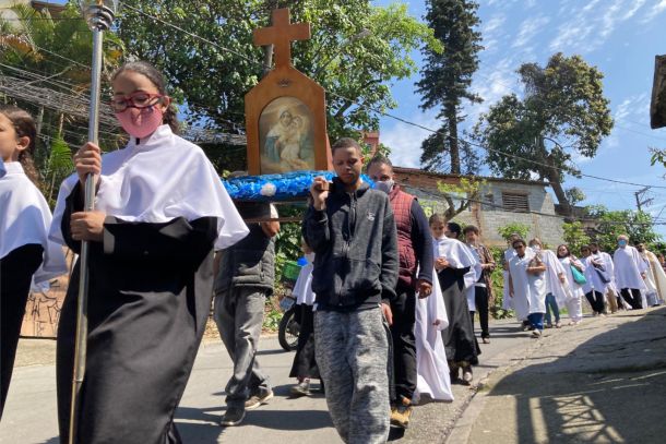 A programação teve início no Cruzeiro, seguindo com o andor da Mãe e Rainha em procissão que foi acompanhada pela Ir. M. Jéssica Maria Assunção Nascimento.