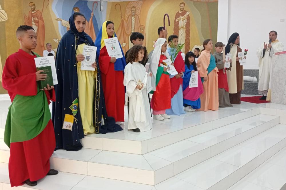 No encerramento da celebração, a equipe foranial preparou um momento especial com a participação de crianças caracterizadas, representando as dez paróquias da forania. Também foi lida uma mensagem da Carta Pastoral do bispo diocesano, destacando a importância da sinodalidade na missão catequética.