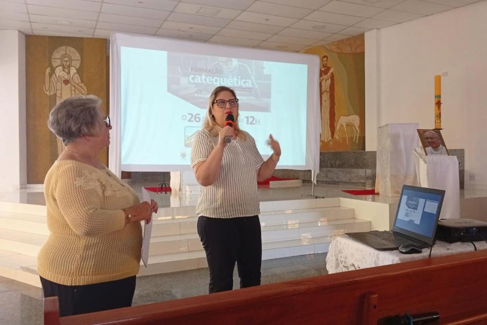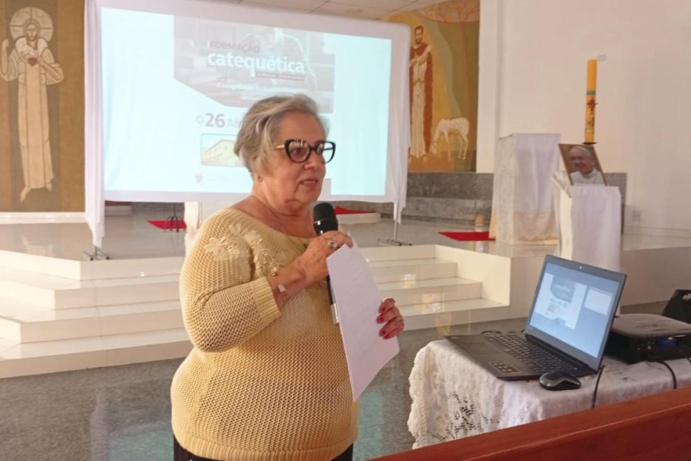 A segunda parte do encontro foi conduzida por Rosana Mancini, diretora da Escola Diocesana de Catequese. Após saudar os presentes e conduzir um momento de consagração dos catequistas, ela apresentou a psicóloga Myriam Giglio, responsável pela formação do dia. Com sensibilidade e profundidade, Myriam abordou o tema do luto e os desafios da evangelização diante da dor e da perda.