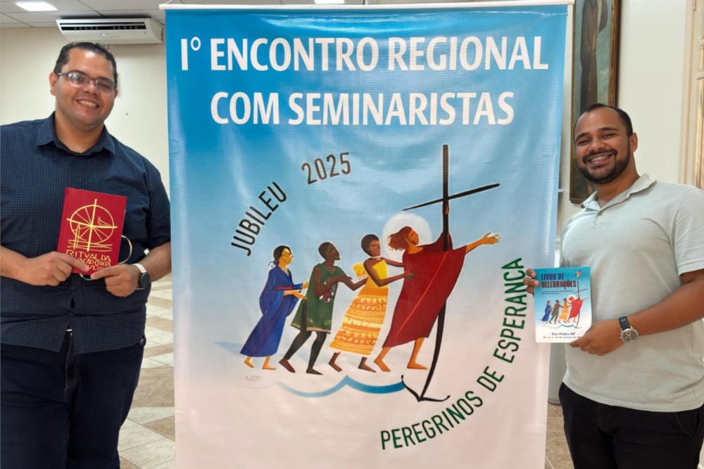 Nos dias 14, 15 e 16 de março, dois seminaristas da nossa Diocese, Gustavo Araújo (2º ano de Teologia) e Rodrigo Amorim (1º ano de Teologia), participaram do 1º Encontro de Seminaristas promovido pela Comissão Episcopal para a Animação Biblico-Catequética da CNBB, no Regional Sul 1.