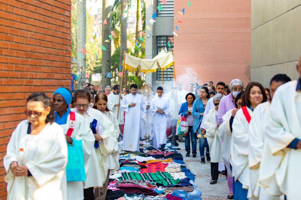 A tradicional solenidade marca os 60 dias após a Páscoa e acontece para celebrar o mistério eucarístico, fazendo referência à celebração e do Corpo e Sangue de Jesus Cristo. A procissão, acompanhada de cantos e meditações, teve um curto percurso pelos arredores da Praça do Campo Limpo e na chegada Dom Valdir deu bênção final.