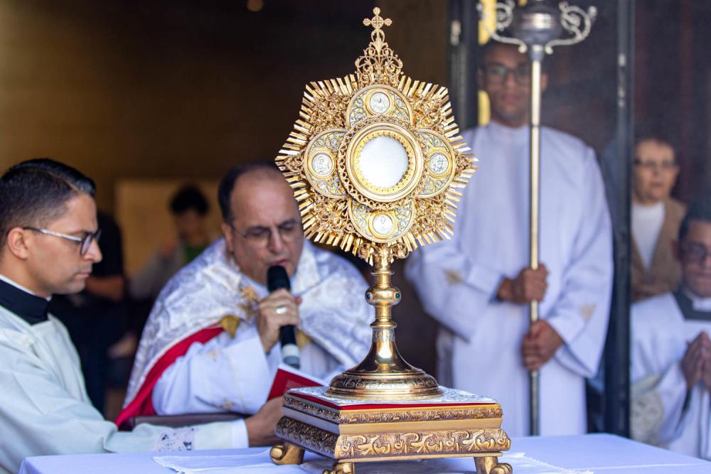 No dia em que a Igreja celebra o Santíssimo Corpo e Sangue de Cristo, na Catedral Diocesana Sagrada Família, centena de fiéis participaram, no início da manhã da celebração eucarística e procissão com Dom Valdir José de Castro, ssp, bispo diocesano. Concelebraram, o vigário da catedral padre Rodrigo Antonio da Silva e padre Orlando Pereira, vigário da Paróquia São João Batista, forania Taboão da Serra.