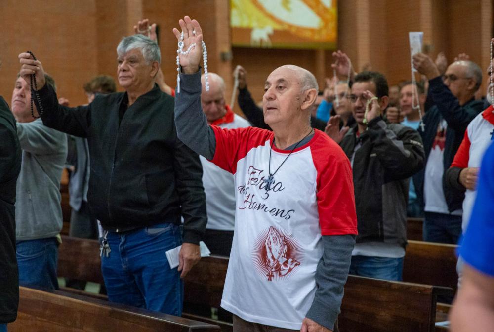 A Igreja ficou tomada pelo som compassado das Ave-Marias, rezadas em coro por homens de todas as idades. Estiveram presentes os coordenadores das nove foranias e o núcleo diocesano do movimento, sinal do crescimento e do vigor dessa espiritualidade mariana que se espalha cada vez mais pelas comunidades.