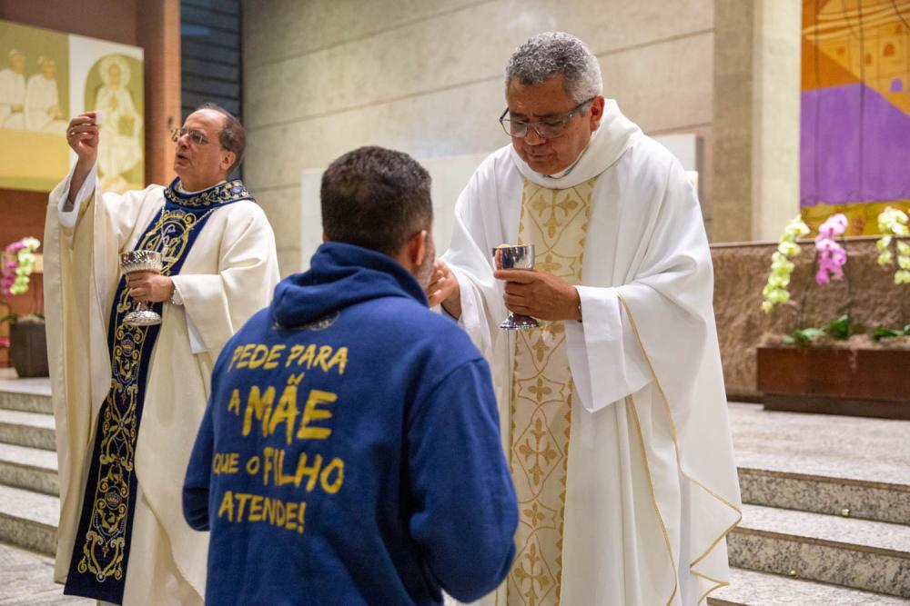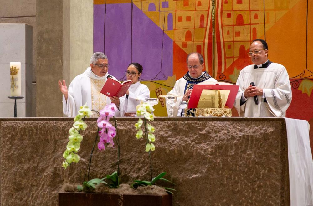 Após a recitação do terço, concluído com a consagração a Nossa Senhora, teve início a Santa Missa, presidida por Dom Valdir e concelebrada pelos padres Orlando Pereira, que celebrou três anos de ordenação presbiteral, e Sandro Ely de Oliveira, pároco da Catedral.