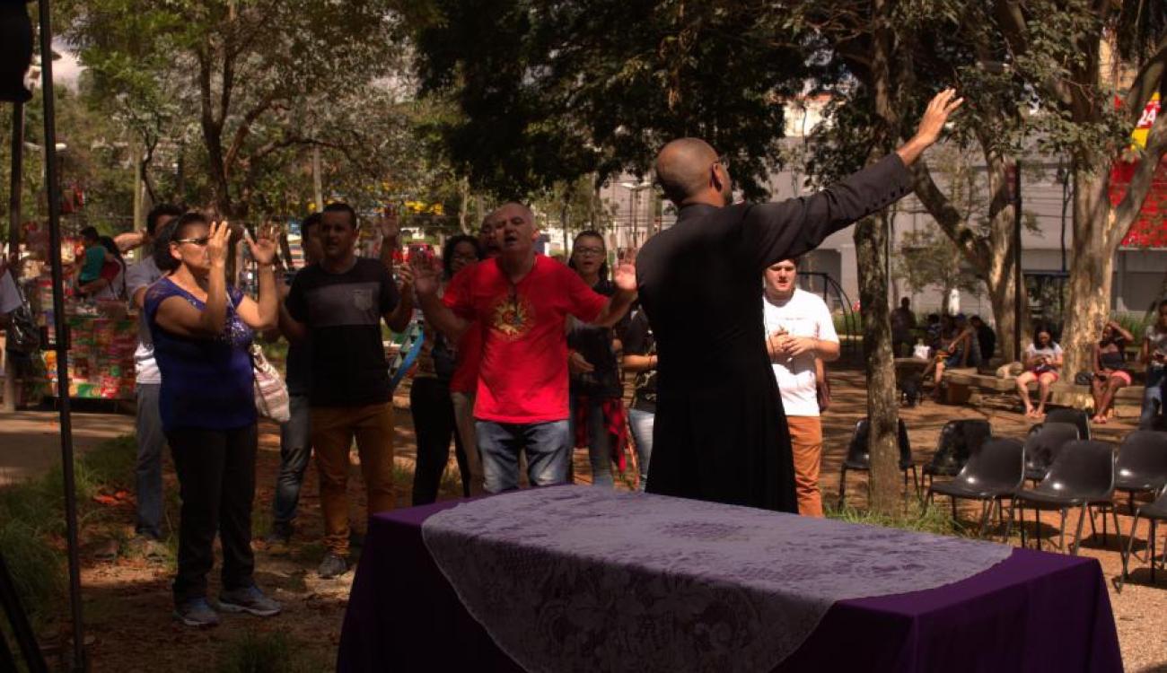 Aos acordes de belíssimas canções católicas, bem no meio da Praça do Campo Limpo, um grande número de pessoas se reuniu na tarde quente do sábado (24/03) para a primeira edição do ‘Tô na Praça Tô na Graça’ que nasceu no coração do Pe. Edalto Miguel, vigário da Paróquia Santo Antônio, no Capão Redondo, a partir do pedido do Papa Francisco de ter uma ‘igreja em saída’.