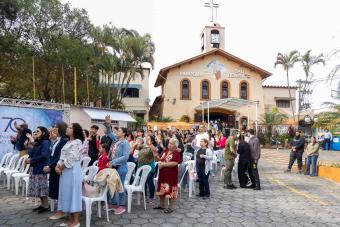A homenagem culminou em uma calorosa salva de palmas e no tradicional "Parabéns a você", entoado pelos fiéis presentes.