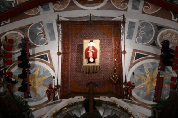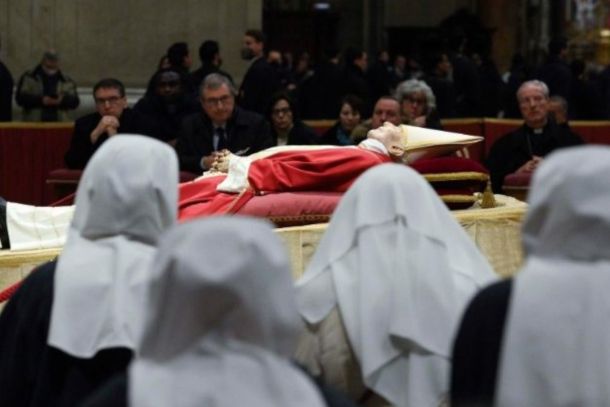 As imagens remetem a abril de 2005, quando o mundo se despediu de São João Paulo II: o caixão de madeira, simples, posicionado diante do altar, sobre o qual foi apoiado o Evangelho aberto. Ao ser depositado no chão, recebeu um beijo do seu então secretário particular Dom Georg Gänswein. Estima-se que cerca de 50 mil pessoas participaram do funeral, entre as quais inúmeras autoridades e chefes de Estado. Celebraram com o Pontífice, além do cardeal-decano Giovanni Battista Re no altar, mais de 120 cardeais, 400 bispos e quase quatro mil sacerdotes.